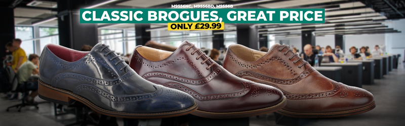 PU /Woven Textile Shoe 4 Eye Brogue Gibson Shoe Leather Quarter Lining & Sock Wood Effect Resin Sole Sizes 6 to 12